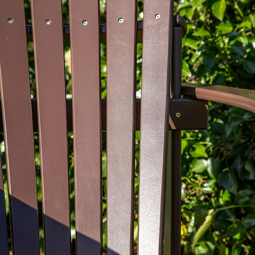 De kunststof duozit is gemaakt van hoogwaardig kunststof. Dit materiaal is uitzonderlijk sterk, waardoor je de tete-a-tete met een gerust hart buiten kunt laten staan in de winter. Het materiaal heeft bovendien een lange levensduur. De donkerbruine kleur wordt ook wel als ‘chocoladebruin’ omschreven. Het is een warme en tijdloze tint, die een rustieke uitstraling geeft aan je tuin. De kleur past mooi in landelijke tuinen en bij een natuurlijke stijl. In tuinen met weelderig groen sluit de donkerbruine tete-a-tete naadloos aan op het buitenlevengevoel.